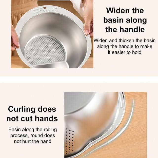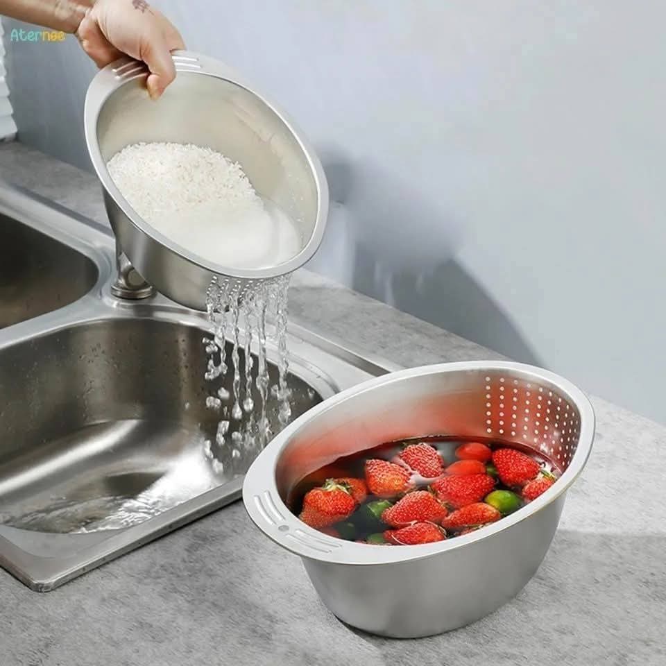 চাল ধোয়া হোক বা ফল-মূল পরিষ্কার – এই মাল্টি-ফাংশন স্টেইনলেস স্টিল বাটি আপনার রান্নাঘরের কাজ করবে আরও সহজ। 🥰